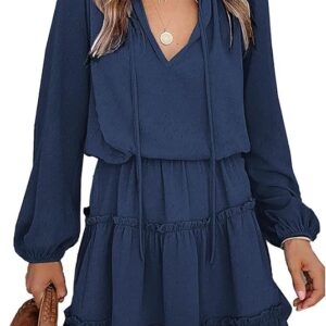 BTFBM Women’s Casual Tie V-Neck Long Sleeve High Waist Ruffle Mini Dress โ Summer & Fall A-Line Swing Tunic$47.99 -